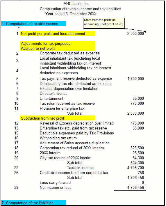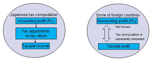 Japanese tax computation is based on the accounting profit of PL of the year with tax adjustments.Tax computation is not independently made from accounting profit.
